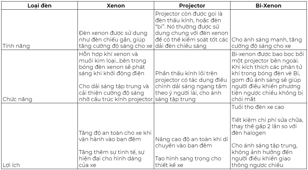 Tất cả những đặc điểm trên giải thích cho ta biết được rằng đèn xenon hầu như chỉ trang bị trên những dòng xe cao cấp.