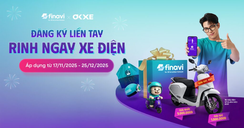 Cơ hội sở hữu ngay một chiếc xe máy điện VinFast Klara Neo từ JBSV x OKXE khi đăng ký tài khoản và thực hiện ít nhất 1 giao dịch trên ứng dụng Finavi. Ngoài ra, còn nhiều quà tặng hấp dẫn khác khi tham gia chương trình từ 17/11 – 25/12/2025.