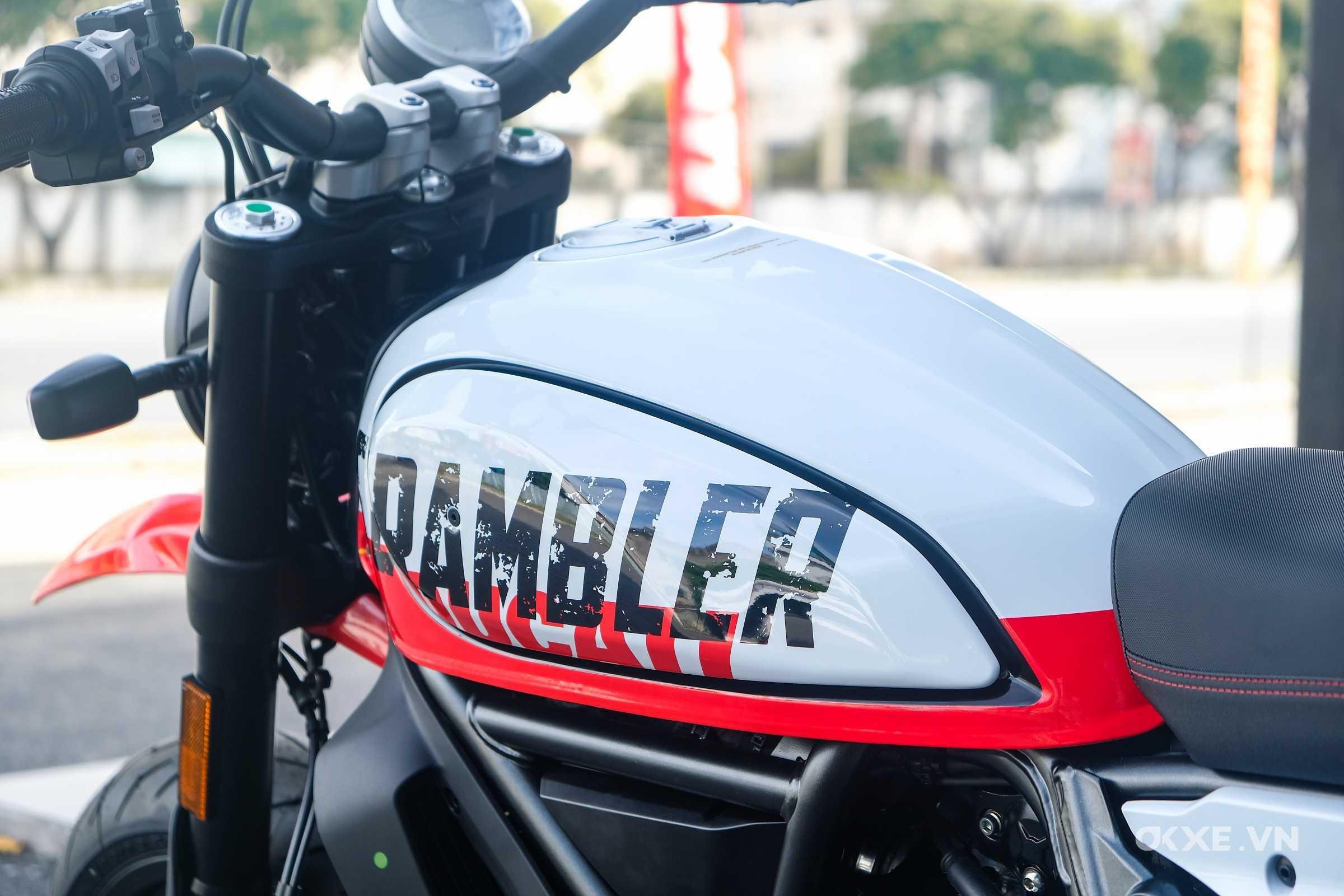 Điểm nhấn riêng của Scrambler Urban Motard là màu sơn đỏ trắng cùng bộ tem theo phong cách graffiti trên bình xăng. Bộ tem này giúp xe trẻ trung, không còn vẻ khô khan thường thấy trên các mẫu xe mô tô địa hình.