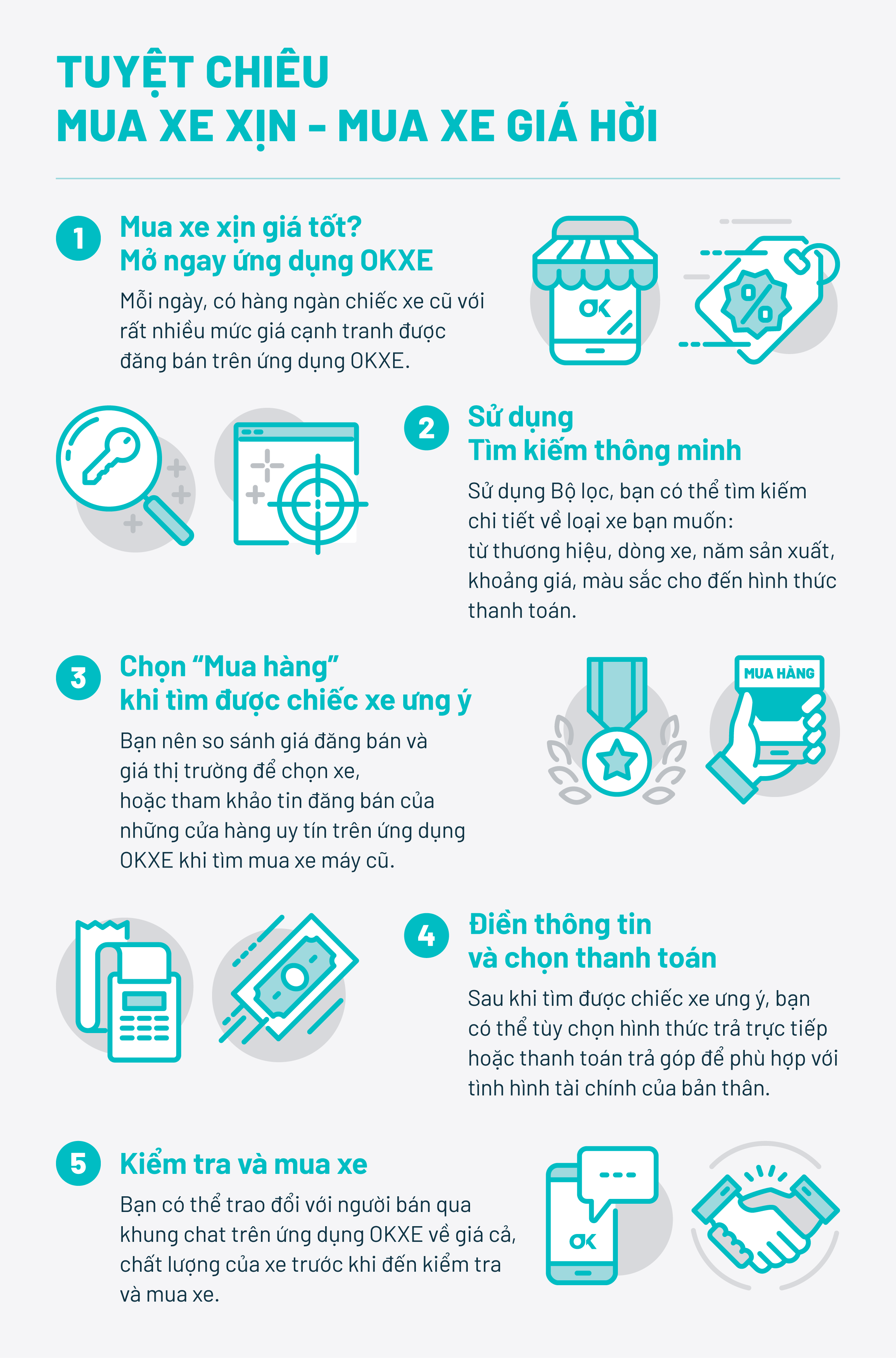 Làm sao để bán xe nhanh và bán được giá tốt? Làm sao để mua được xe xịn với giá mức giá hời? Bạn tham khảo hướng dẫn mua-bán xe máy cũ trên ứng dụng OKXE theo hướng dẫn dưới đây nhé.