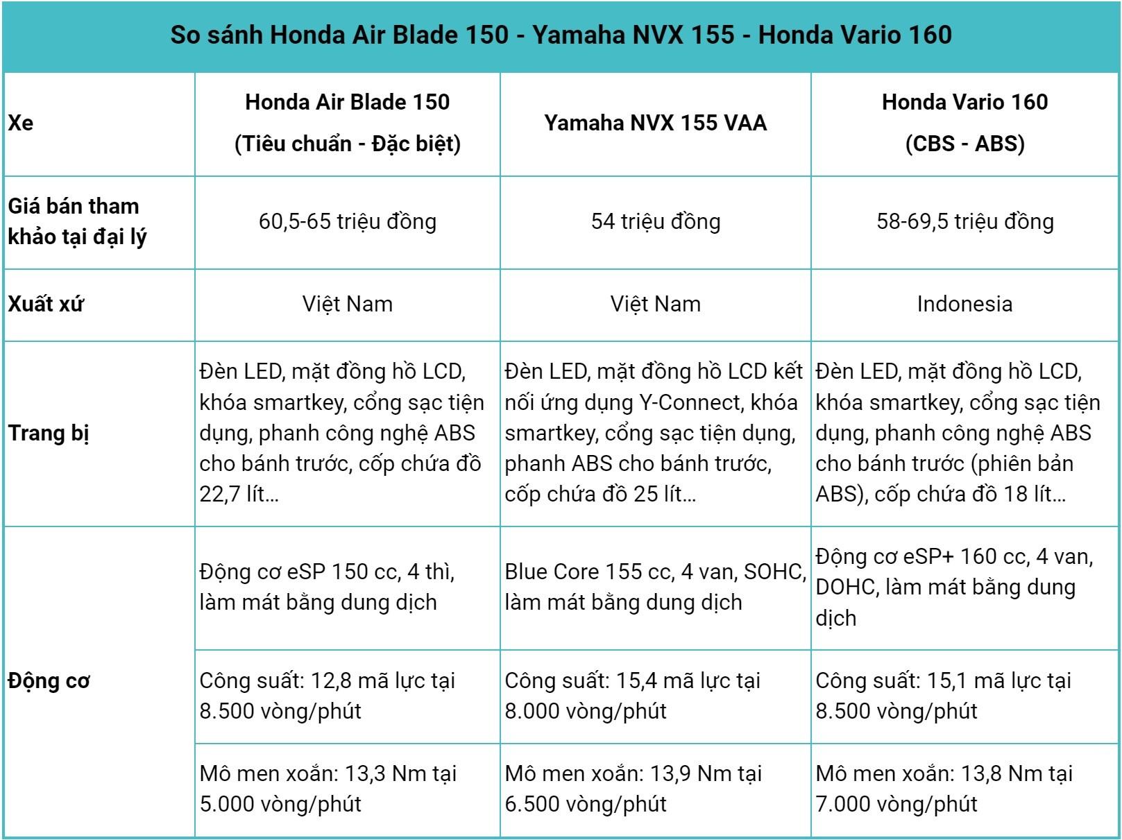 Nên mua Honda Vario 160 2022, Air Blade 150 hay Yamaha NVX 155 VAA?