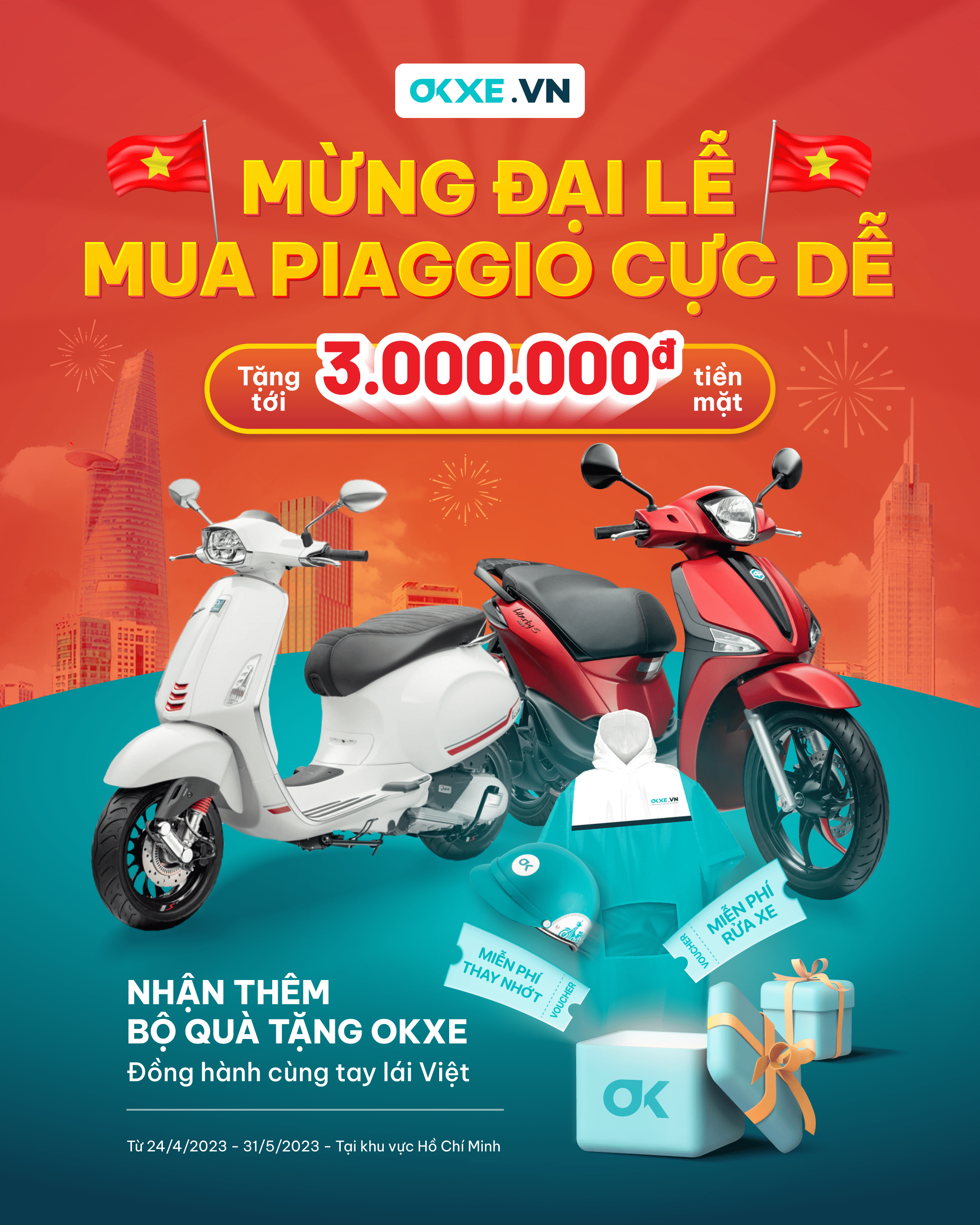 Chương trình Mừng Đại Lễ – Mua Piaggio cực dễ dành cho 10 khách hàng đầu tiên mua xe Piaggio và Vespa tại Trạm Dịch vụ Xe máy OKXE – Trạm OKXE ở TP.HCM.
