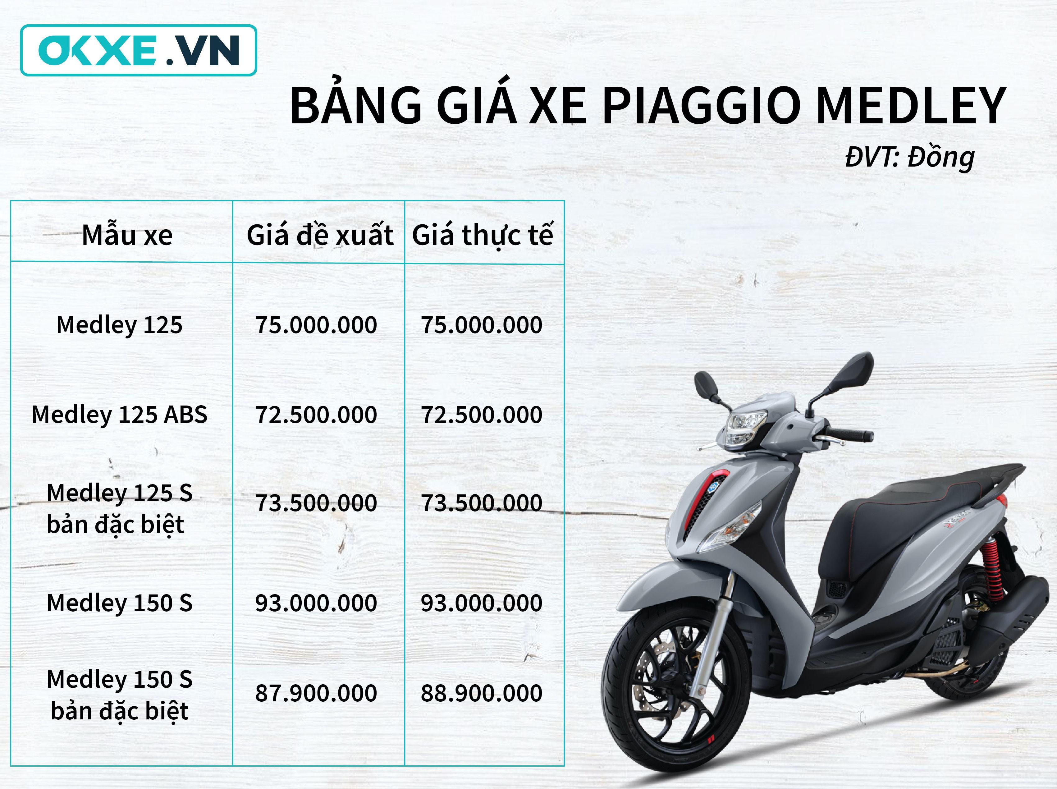 Sau khi khảo sát tại một số đại lý của Piaggio trên toàn quốc, giá những mẫu của hãng đến từ nước Ý không có quá nhiều biến động so với cách đây 1 tháng. Được biết, giá xe tay ga Piaggio khá ổn định, ít khi bị chênh giá hoặc hụt giá. Phân khúc bình dân có thể kể đến như Piaggio Zip, Piaggio Fly. Phân khúc tầm trung có Piaggio Liberty và phân khúc cao cấp có Piaggio Medley.