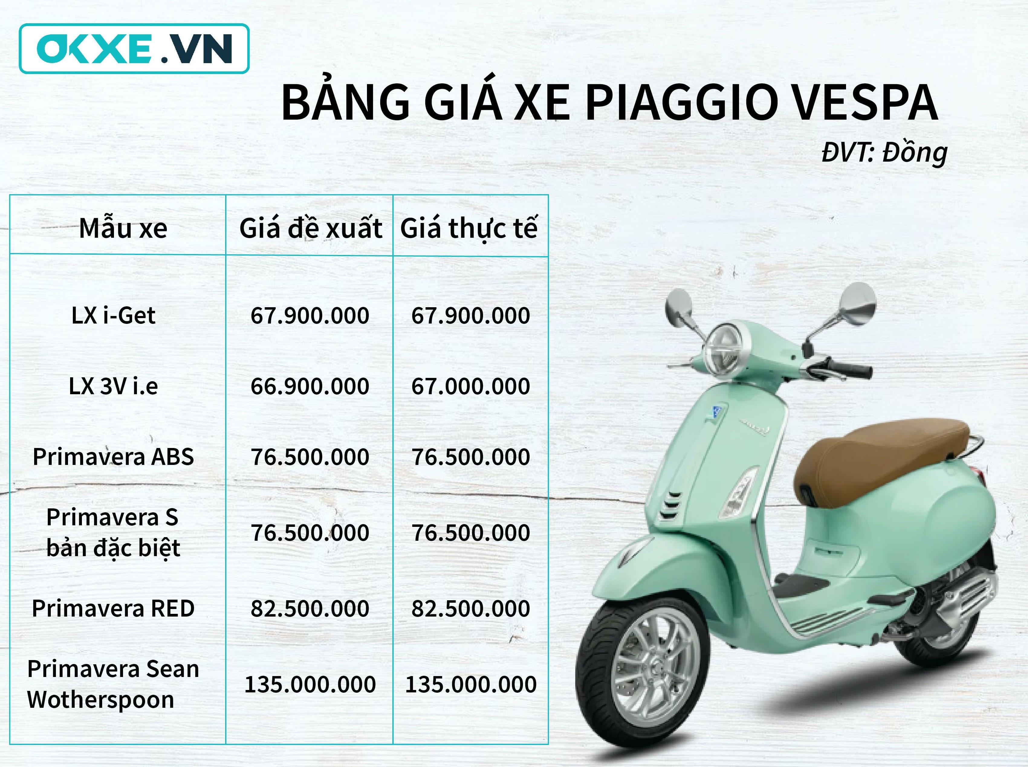 >> Xem thêm: Bảng giá xe máy Piaggio mới nhất tại đây