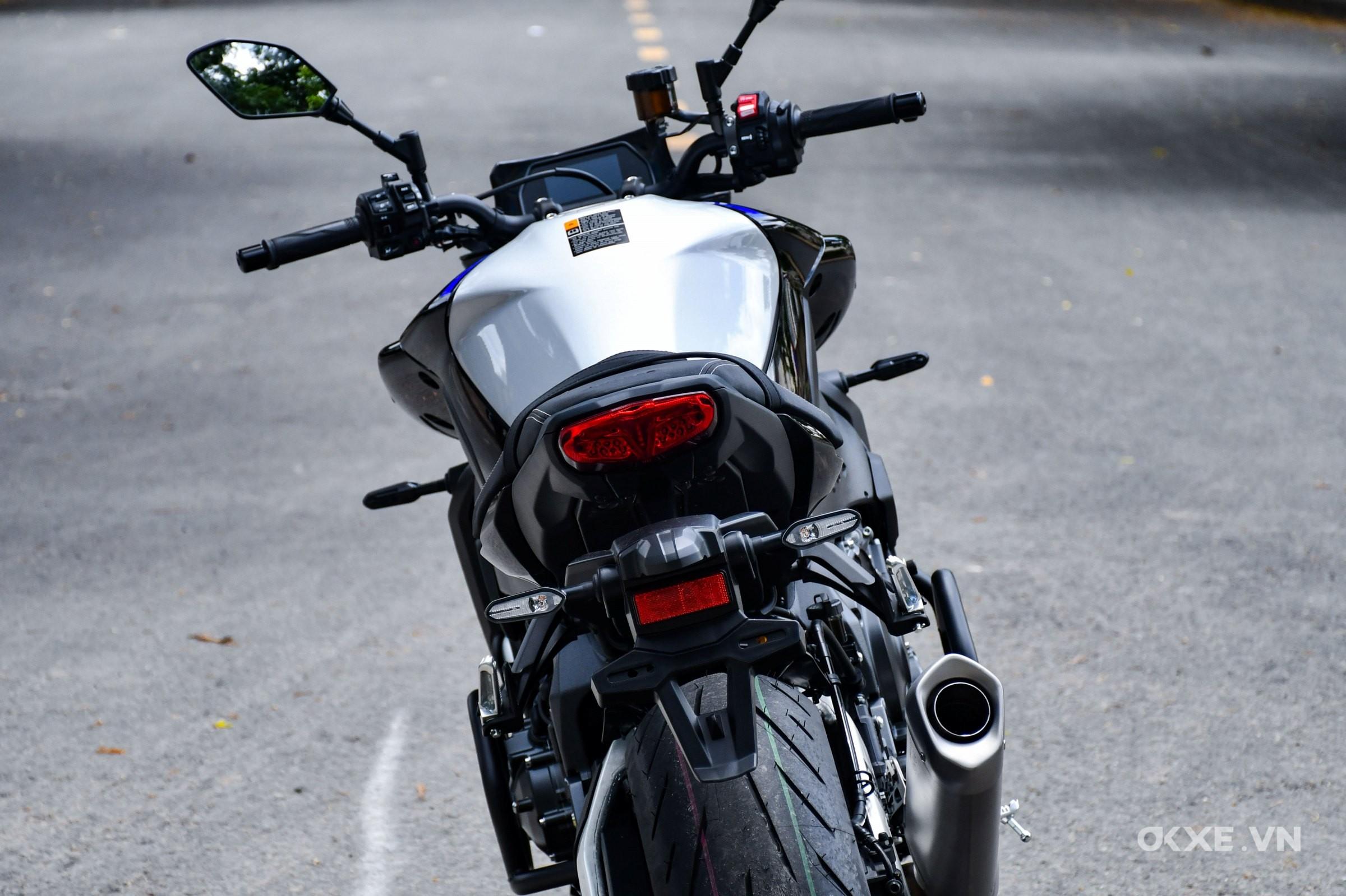 Phần thân xe, đặc biệt là bình xăng, của MT-10 2023 được giảm đi những đường cắt xẻ, gân guốc. Nhờ vậy, tổng thể xe trông liền lạc và thân thiện hơn. Cụm đèn hậu và ống xả không có khác biệt quá nhiều so với đời cũ.